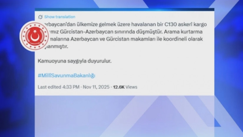 "ჩვენმა სამხედრო სატრანსპორტო თვითმფრინავმა სი-130-მა, რომელიც აზერბაიჯანიდან ჩვენს ქვეყანაში დაბრუნებას აპირებდა, საქართველო–აზერბაიჯანის საზღვრის სიახლოვეს კატასტროფა განიცადა. სამძებრო და სამაშველო ოპერაციები დაწყებულია აზერბაიჯანისა და საქართველოს ხელისუფლებებთან კოორდინაციით," - წერს თურქეთის თავდაცვის უწყება.