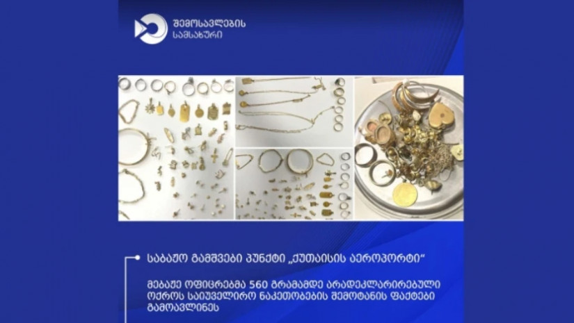 "ფინანსთა სამინისტროს შემოსავლების სამსახურის საბაჟო გამშვებ პუნქტში "ქუთაისის აეროპორტი", კანონდარღვევის 5 ფაქტი აღიკვეთა. კერძოდ, მებაჟე ოფიცრებმა ეჭვის საფუძველზე, საქართველოს მოქალაქეების, როგორც ფიზიკური ასევე კუთვნილი ბარგის დეტალური დათვალიერების შედეგად, ჯამში 559,92 გრამი არადეკლარირებული ოქროს საიუველირო ნაკეთობები და მონეტები აღმოაჩინეს.