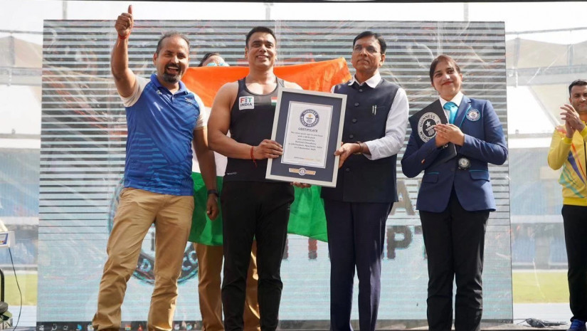 ინდოელმა როჰტაშ ჩაუდჰარიმ, გინესის ახალი მსოფლიო რეკორდი დაამყარა - მან ერთ საათში თითქმის 30 კილოგრამიანი ზურგჩანთით 847 აზიდვა შეასრულა.